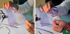 Como o crinol é uma espécie de tela que se expande em todas as direções, bastará pegar a pontinha da ponta que sobrou no meio do laço e fazer uma volta com a mesma, até que seja possível prender a ponta também no meio do laço. Costure o miolo do laço com uma linha da mesma cor do crinol e prenda-o no arco de metal com alguns pontos reforçados.
